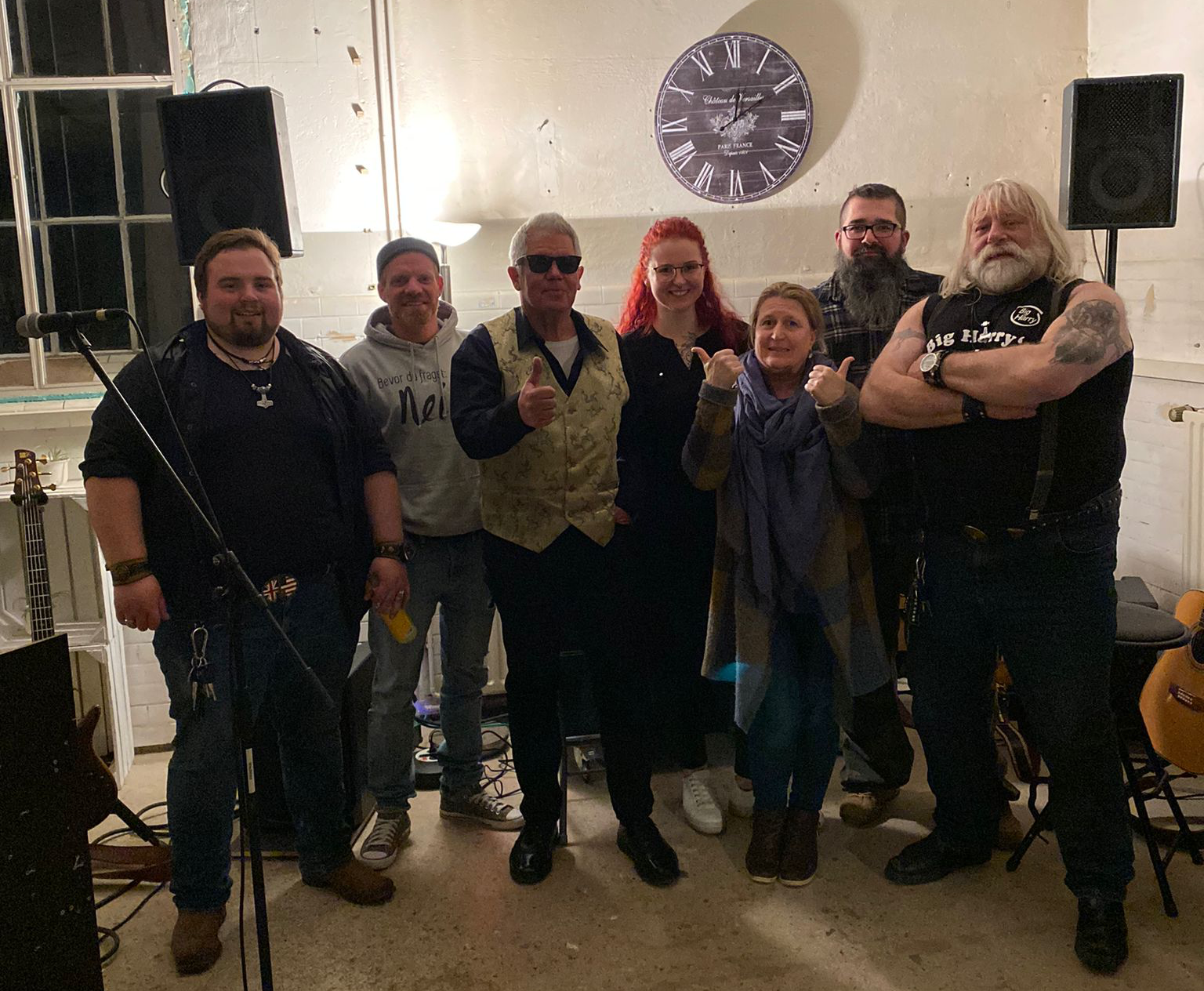 Big Harry (1.v.r.) mit Band (1/2/3 v.l.) sowie Inga Lützen (m.) und Daniel Spizzirri (2.v.r.)