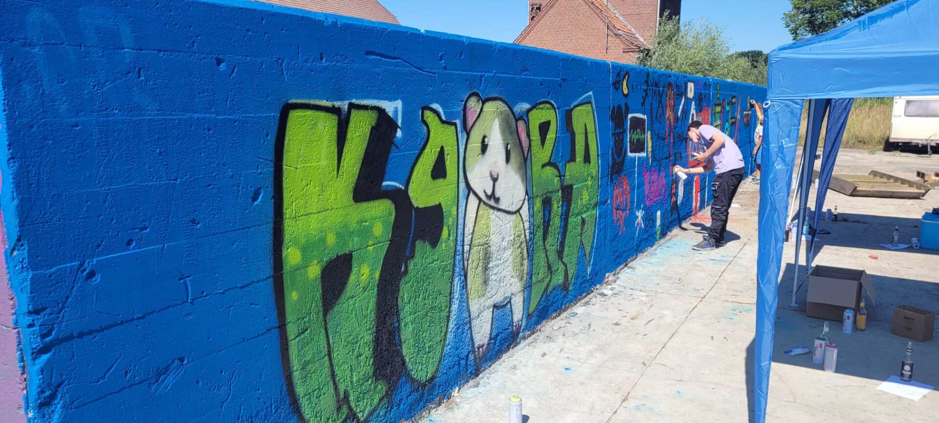 im 2. Teil unter Anleitung an die Wände gesprüht wurden.